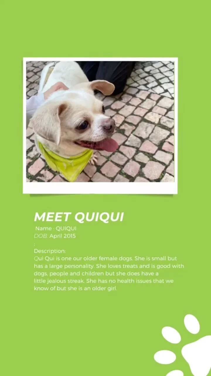 是雌性中型犬、她與媽媽Yum Yum和Peanut同時於澳門新濠影滙的地盤被Masdaw拯救。